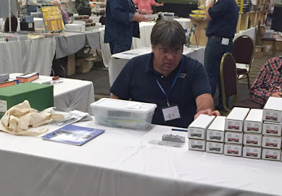 Another manufacturer present was Frank Hodina, of Resin Car Works, who I know sold quite a few new kits (see more about this business at: http://resincarworks.com/ ). Here he is at his table, with the remaining stock of kits in front of him. I bought one of his boiler load kits myself. This is the kind of manufacturer seen only at meetings like this one.