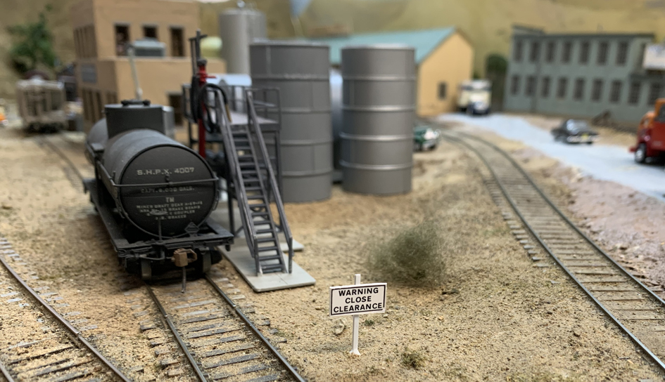 My clearance signs are from Microscale decal set 87-206, called “Railroad Way Signs.” I simply apply the decals to 0.010-inch styrene sheet, give it a coat of flat finish, and cut out. These can then be applied to structures or to something like a 4 x 4-scale inch styrene post.