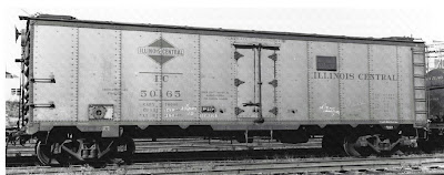 This seems to settle the question of correct colors for these cars, as originally built. My model does have black ends, and I could paint all the roof parts aluminum. But then I would have a 1937 car, not really appropriate for my 1953 modeling year. For the appearance in later years, I would have to add fans and paint the roof and placard boards black. Not only that, but the IC emblem and reporting marks were moved to the right to clear the fans. Below is an in-service view, also from George Corral, showing this appearance, with the obviously retrofitted fan control.