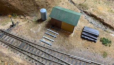 I always have been a little disappointed that I didn’t take advantage of this location to include a pull-out for a handcar. Near a tunnel is a logical and quite common location, but I didn’t do that here because the shed is too close to the track. (I did include a handcar pull-out at the SP mainline tunnel entrance near Shumala; see a view of that area in the last photo of this post: https://modelingthesp.blogspot.com/2022/10/my-walking-around-list.html ).